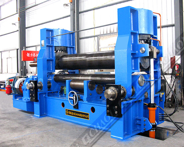 具備板端預(yù)彎功能,通過上輥水平移動,使上輥相對于下輥呈非對稱位置來實現(xiàn)板端預(yù)彎。
