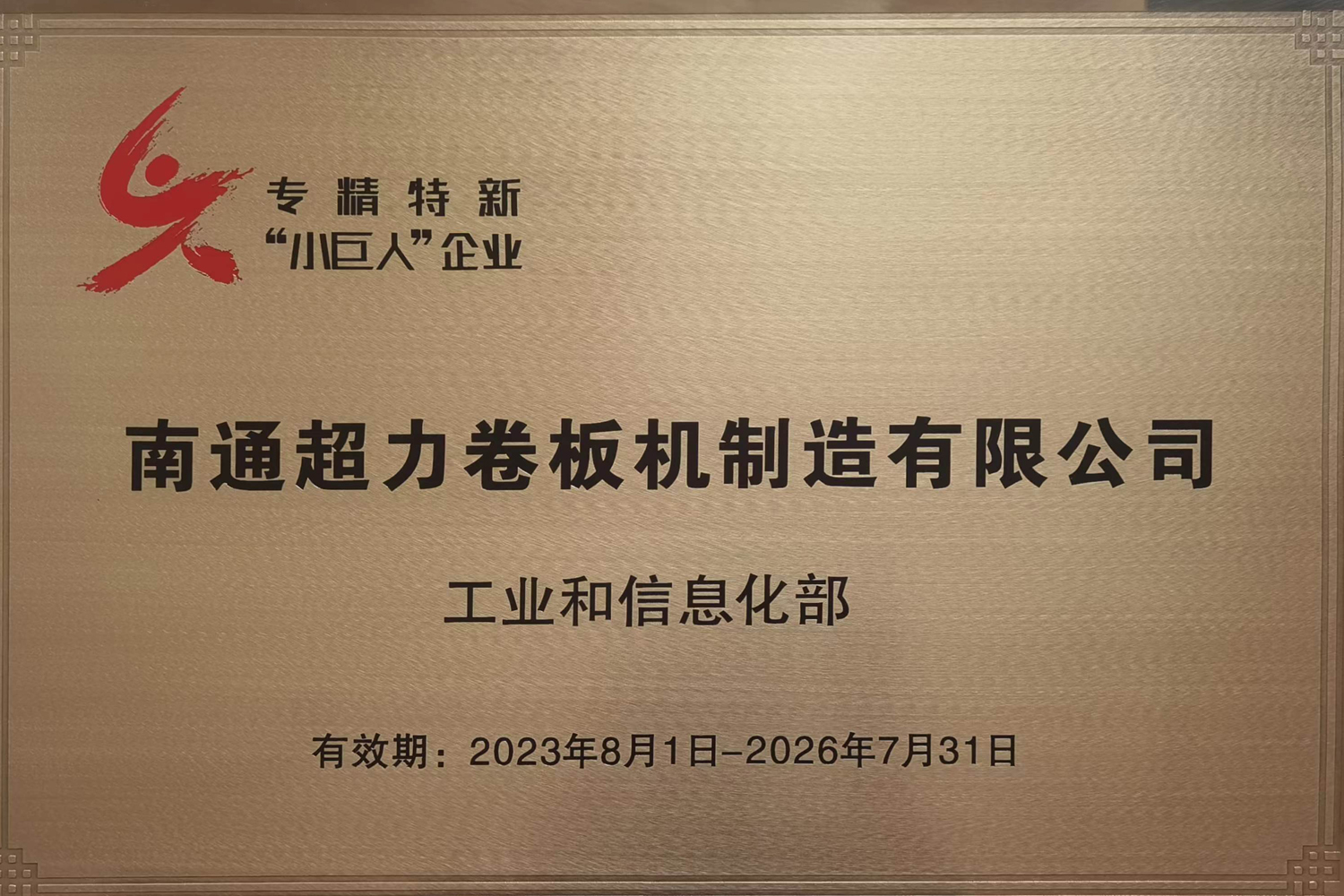 南通超力卷板機公司憑借15年來對卷板機領(lǐng)域的專注耕耘,堅持自主創(chuàng)新,夯實核心競爭力,成功入選2023年國家級專精特新“小巨人”企業(yè)名單。